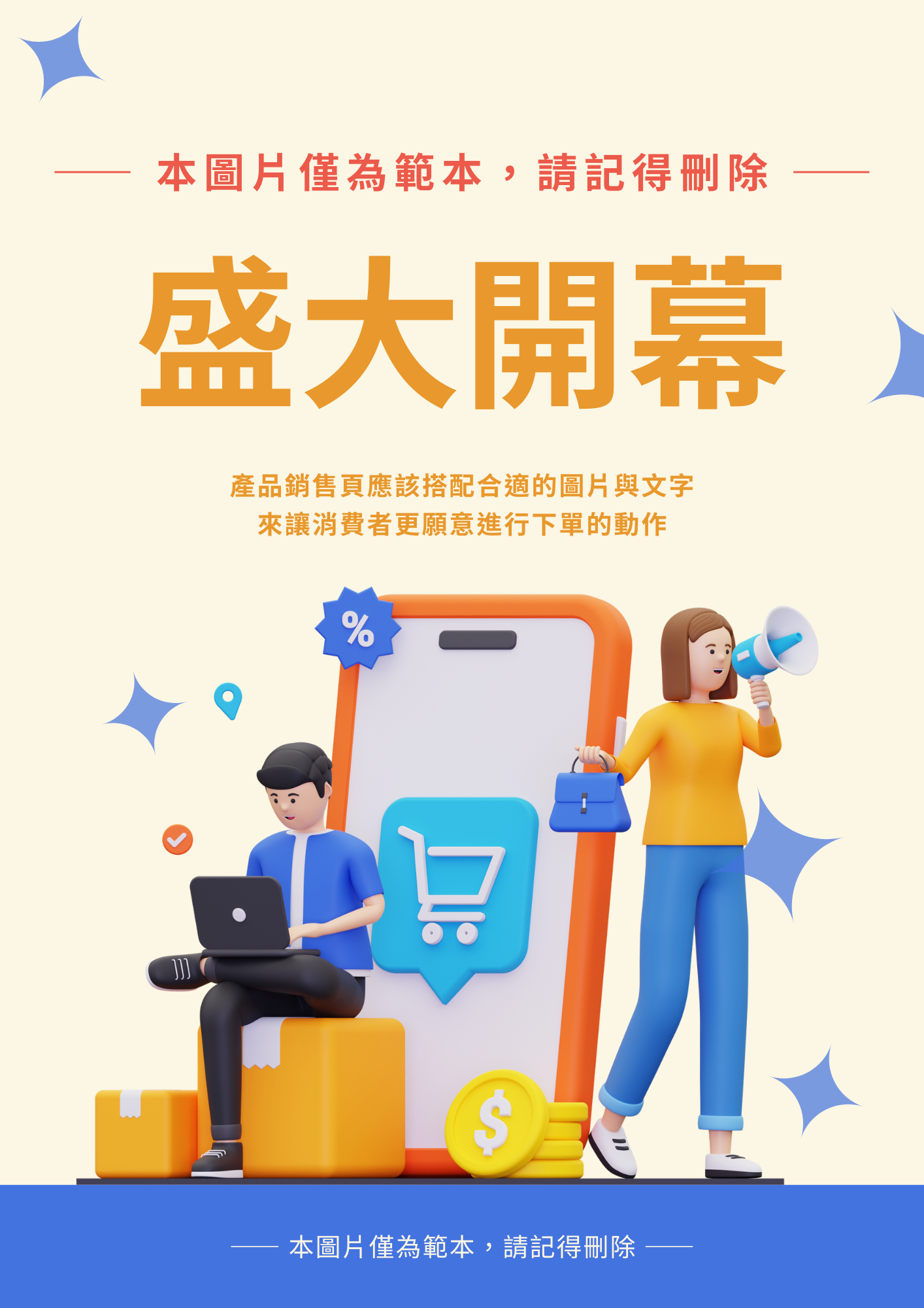 特價中 🔍 簡單商品範例 (熱門 – 無圖庫)NT$999 原始價格:NT$999。NT$699目前價格:NT$699。 這是一款展示用的範例商品,為展示電子商城內容而設計,展示如何進行清晰簡單的商品描述,並且以條列形式說明其主要優點。 商品特色: 高品質材質:採用優質材質製作,保證產品耐用且安全。 實用設計:設計符合現代需求,無論家庭或辦公使用都能發揮出最佳效果。 多功能應用:適合多種場景使用,滿足您的不同需求。 環保選擇:產品製造過程考慮環境影響,使用可持續材料。 時尚外觀:簡約且時尚的外觀設計,適合各種風格空間。 簡單商品範例 (熱門 - 無圖庫) 數量 加入購物車 描述 這邊是你可以放些商品圖片或是文字介紹的區塊 請記得將以下這些內容刪掉換上專屬於你的產品資訊 相關商品 特價中 組合商品範例 (熱門) NT$699 查看商品 特價中 外部商品範例 (熱門) NT$999 原始價格:NT$999。NT$699目前價格:NT$699。 馬上購買 特價中 簡單商品範例 (熱門 – 有圖庫) NT$999 原始價格:NT$999。NT$699目前價格:NT$699。 加入購物車 特價中 可變商品範例 (熱門) NT$999 原始價格:NT$999。NT$699目前價格:NT$699。 選擇規格 此產品有多種款式。 可在產品頁面選擇選項